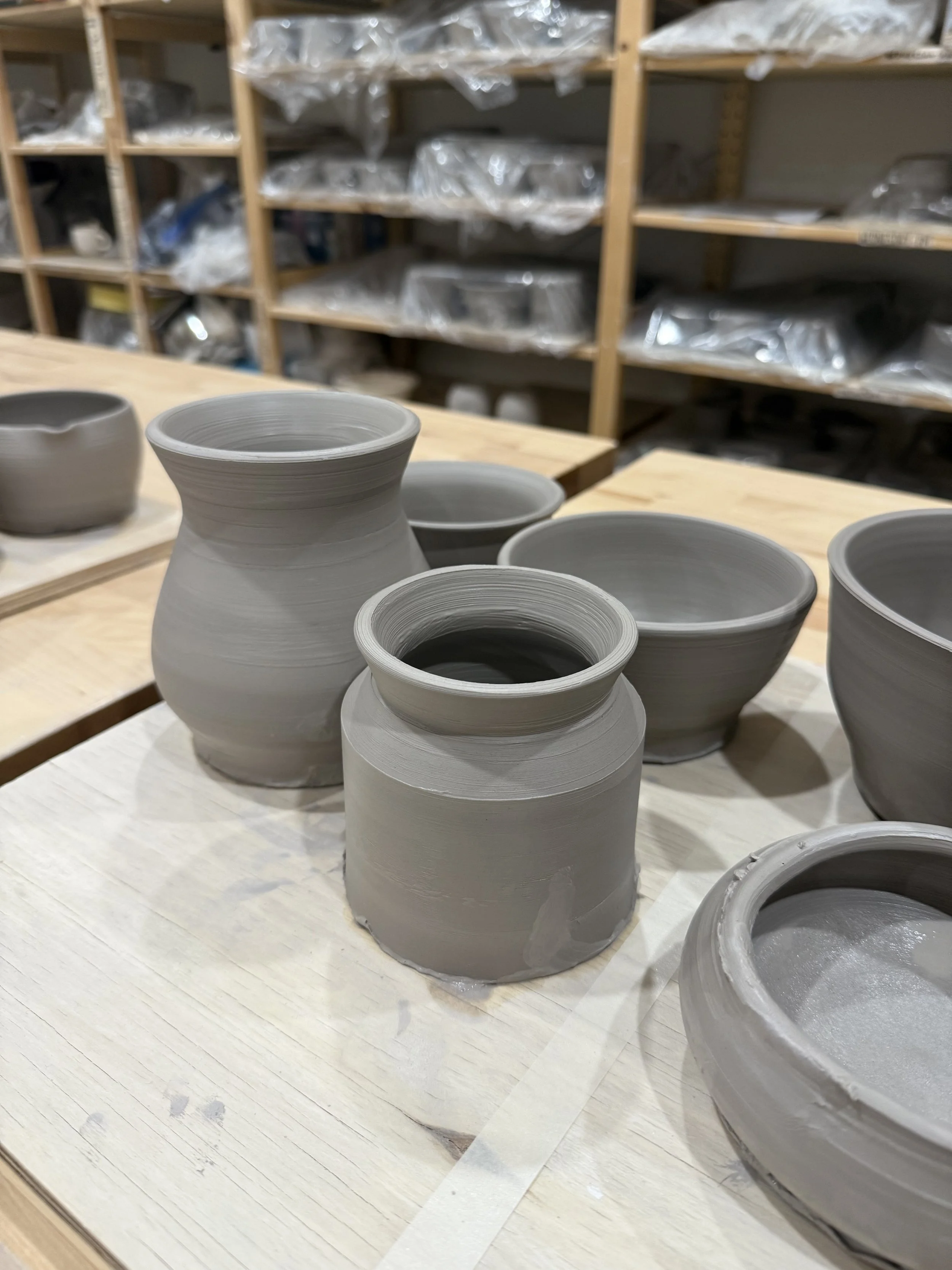 Noelle discovered ceramics in late 2024 during a pottery class with her sister. Her first attempts were imperfect—thick walls, uneven rims—but something about the process felt grounding and eye-opening. It became a turning point, reconnecting her with the creative world she grew up around.